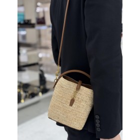 생로랑 르 37 미니 라피아 버킷 백