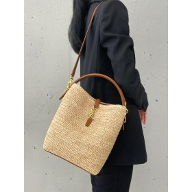 생로랑 르 37 라피아 버킷 백