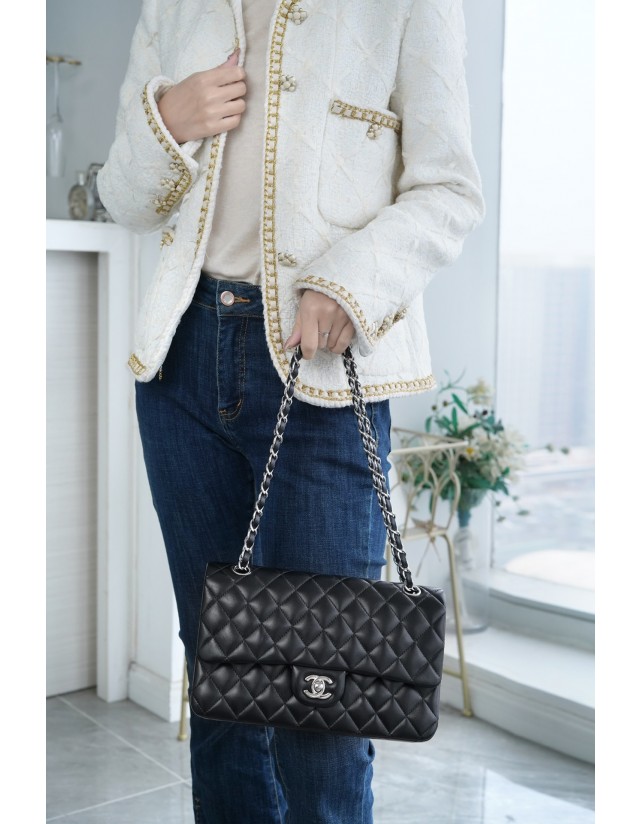 샤넬 클래식 미듐 플랩백 블랙은장