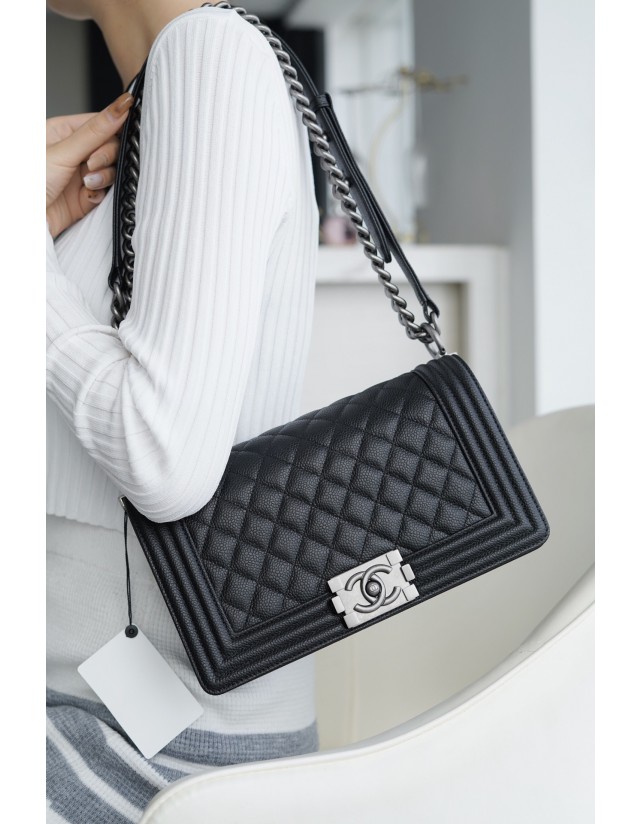샤넬 르 보이백 미디움 은장