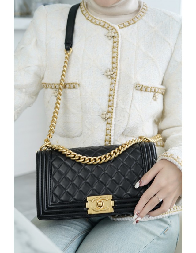 샤넬 르 보이백 미디움 금장