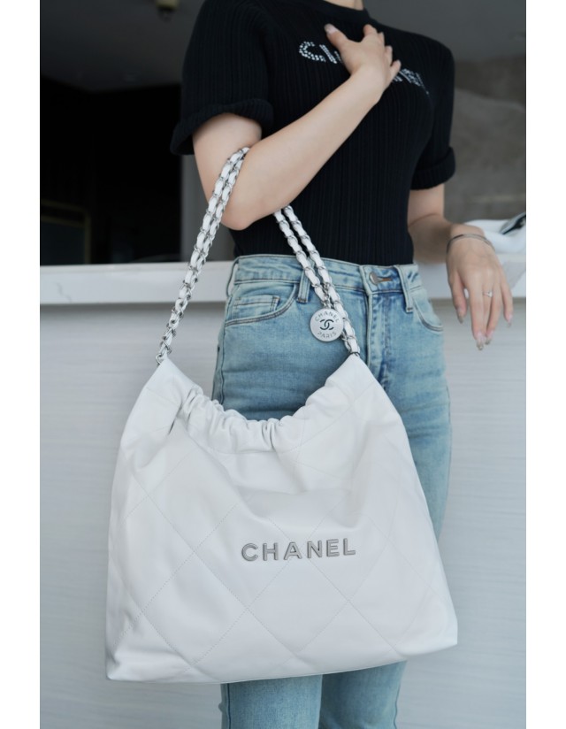 샤넬 22P 핸드백 미디움 화이트 은장