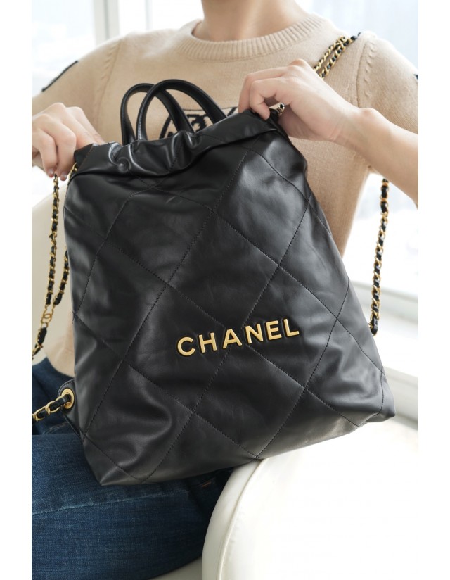 샤넬 22 백팩 스몰 블랙 금장
