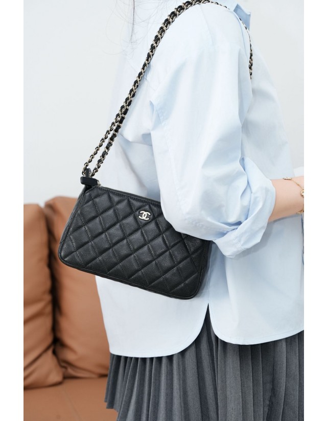 샤넬 캐비어 퀄팅 체인 퍼스 위드 체인