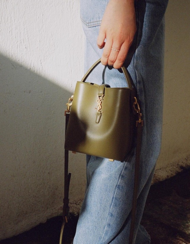 생로랑 르 37 미니 라피아 버킷 백