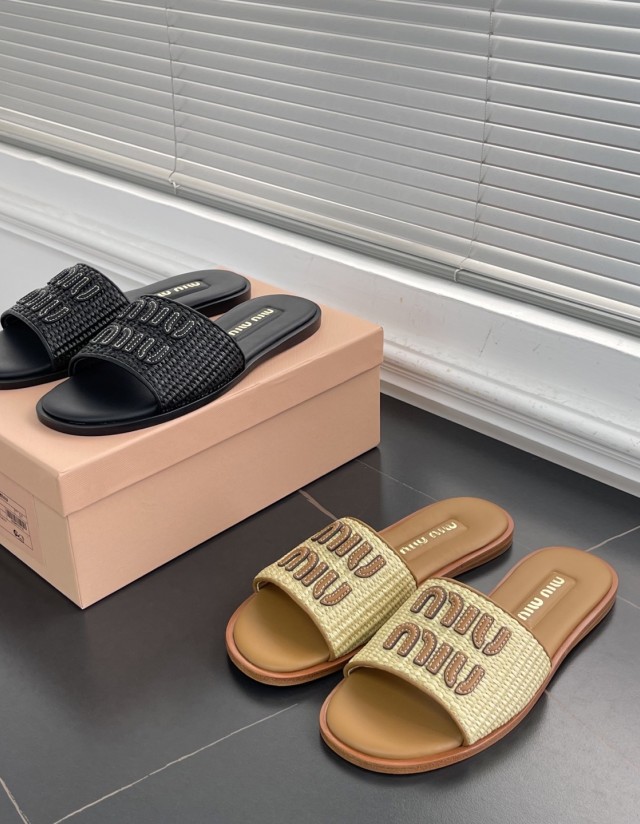 미우미우 라피아 이펙트 슬리퍼